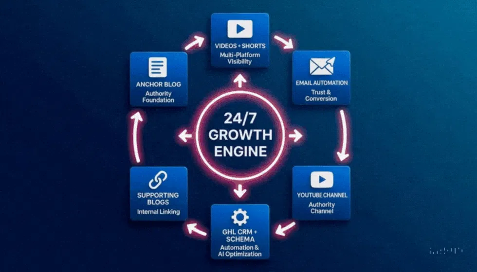 Our AI-optimized ecosystem builds long-term discoverability across Google, YouTube, voice assistants, and AI-driven search — so your visibility compounds automatically while you sleep.